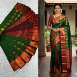 Emerald Green & Copper Zari Kanchipuram Silk Saree with Traditional Leaf Putta Embose Saree